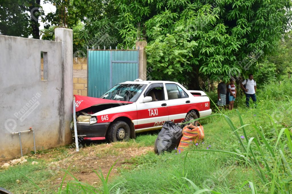 El percance vial ocurrió al rededor de las 2:00 de la tarde de este miércoles 26 de julio, en la carretera Acayucan – Congregación Hidalgo; Johan Morales, conductor de la unidad del servicio público en la modalidad de taxi marcado con el número económico 645 de Acayucan, mencionó que debido a una falla mecánica y por circular a alta velocidad en la que se desplazaba, terminó por salirse de la vía y chocar contra la barda de una casa.