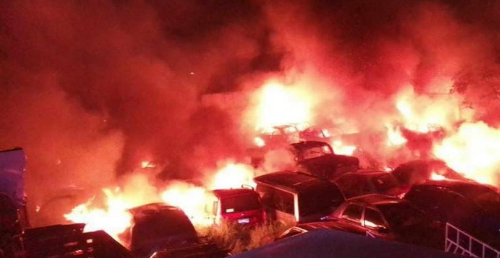 Un comando armado, de hombres encapuchados, ingresó, roció con gasolina e incendió las grúas y vehículos que se encontraban al interior del corralón de Grumex, empresa presuntamente ligada al secretario de Gobierno de Veracruz, Eric Cisneros Burgos.