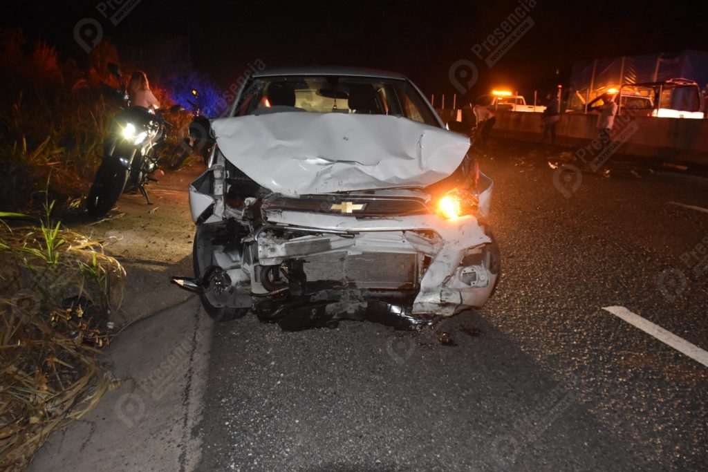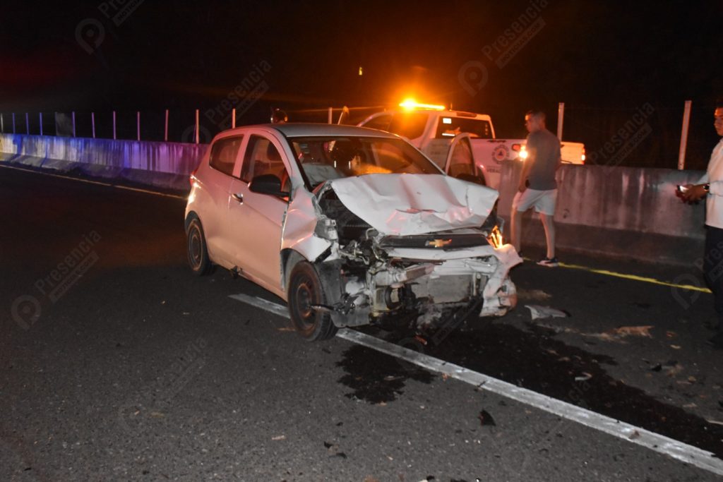 La noche de este viernes se registró un aparatoso accidente en donde resultaron lesionados, tres personas que viajaban en un vehículo compacto; según datos obtenidos, una camioneta que intentaba dar vuelta en “U”, en un espacio del muro de contención de la carretera transístmica.