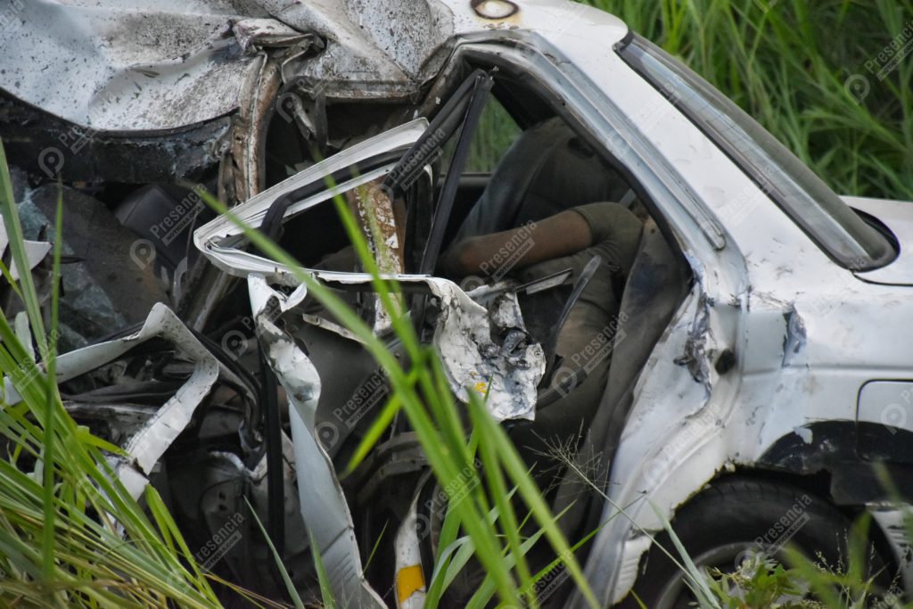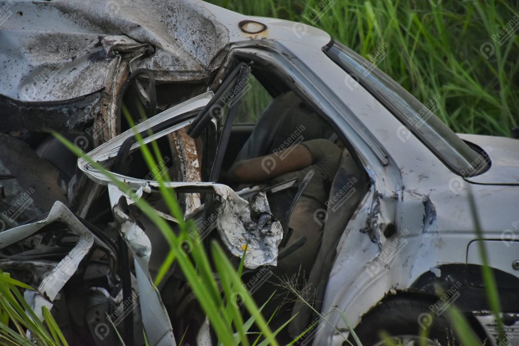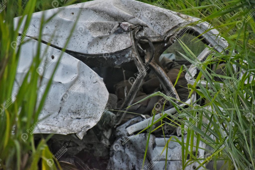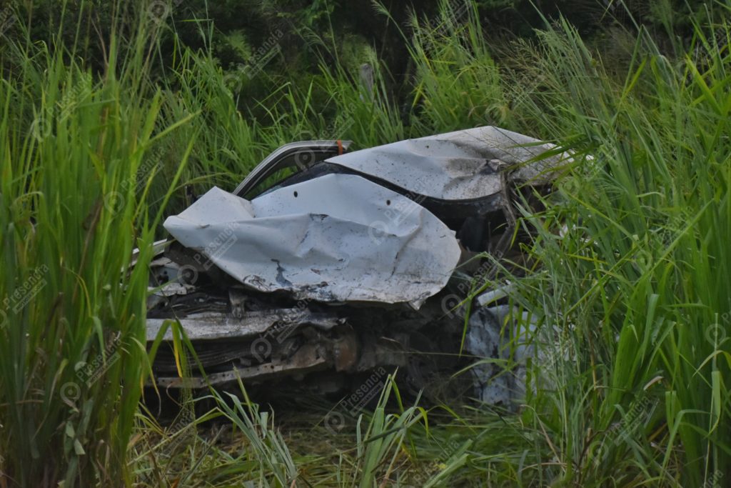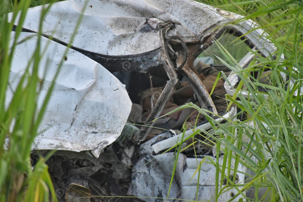 Los fallecidos iban como ocupantes del automóvil Nissan tipo Tsuru de color blanco, cuyo conductor quedó prensado y la unidad en un barranco a un lado de la carpeta asfáltica.
