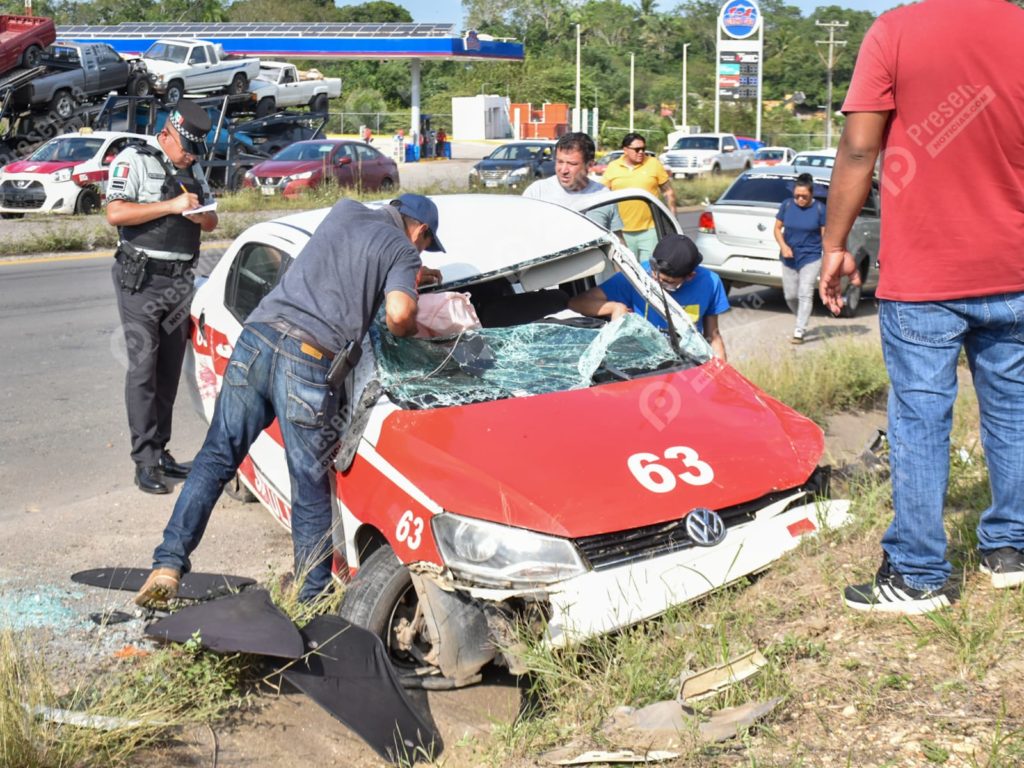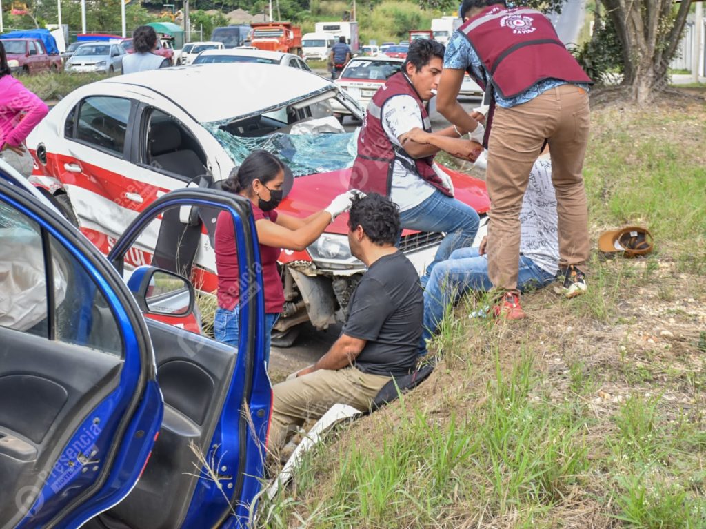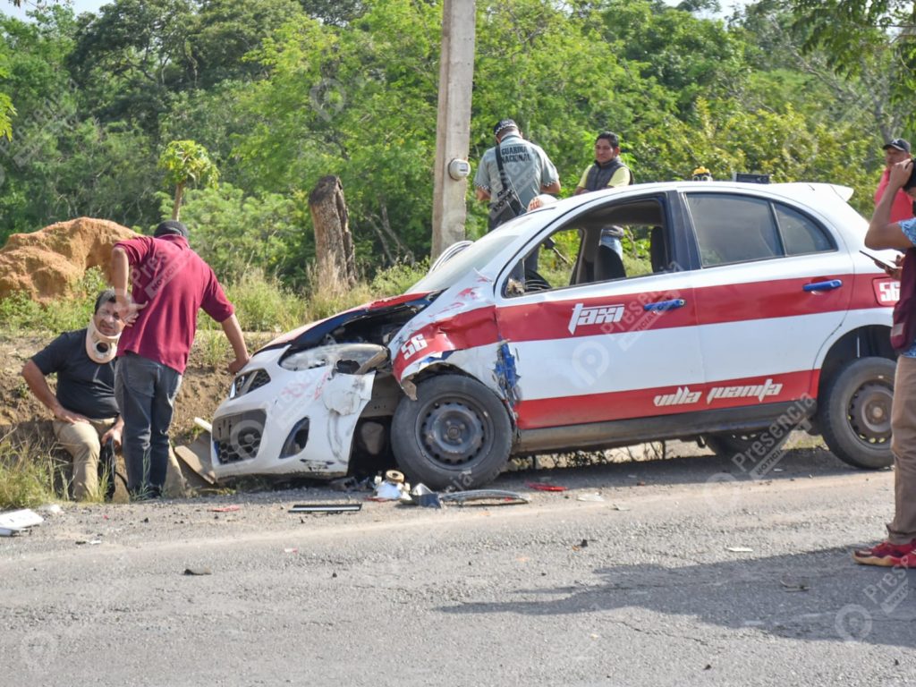 De acuerdo a datos proporcionados, el conductor de un vehículo del servicio público en la modalidad de taxi marcado con el 56 de la localidad Villa Juanita, municipio de San Juan Evangelista, se desplazaba a exceso de velocidad, lo que ocasionó que terminara perdiendo el control del volante, cruzándose el camellón central e impactándose de frente contra el taxi 63 de Sayula de Alemán.