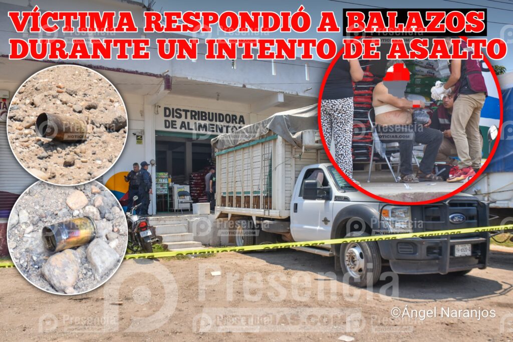 Según testigos oculares, observaron que, dos hombres que, portaban cascos de seguridad a bordo de una motocicleta, arribaron al negocio, para amedrentar a los presentes lanzaros disparos de arma de fuego, casi inmediato, un cliente, ganadero que, se encontraba haciendo una transacción comercial, tomó su arma que portaba, y repelió la acción.