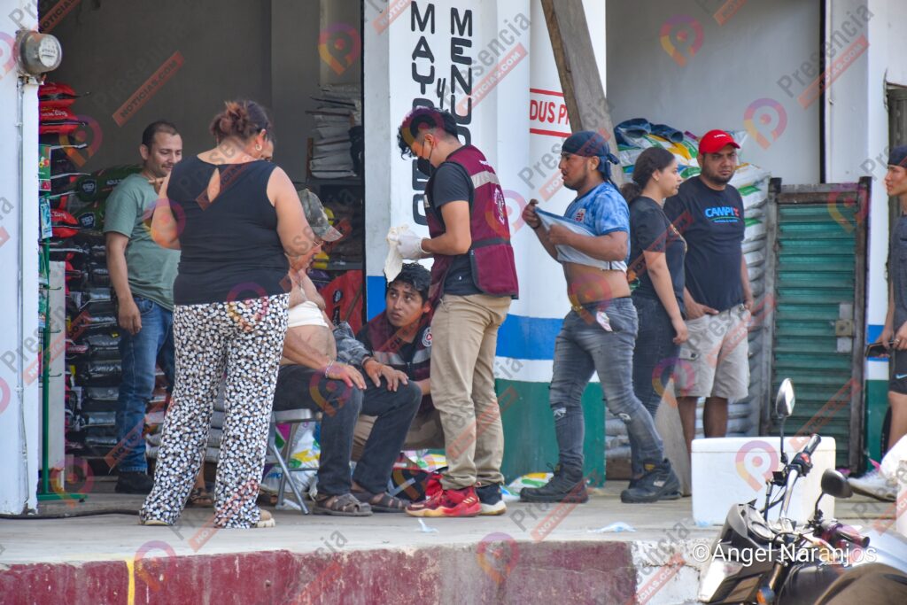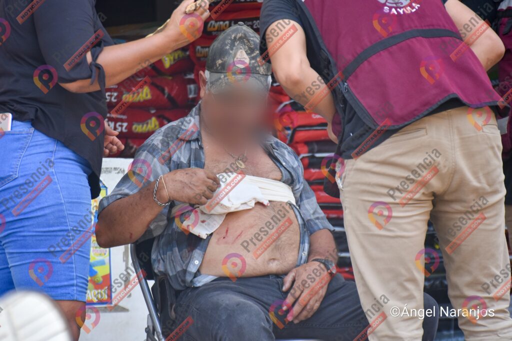 Los elementos de Protección Civil de Sayula de Alemán, le brindaron la atención prehospitalaria y le colocaron una venda para evitar el sangrado, según los paramédicos, se negó a ser trasladado a un centro médico y continuó realizando su compra.