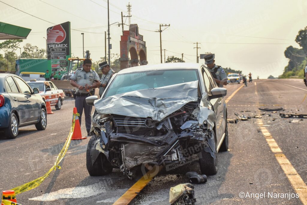 - El impacto ocurrió justo frente a la entrada del bulevar de Soconusco sobre la vía federal.