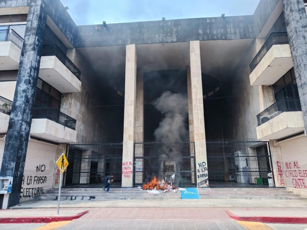 Las protestas de la CNTE en Chiapas continúan sin importar que falta poco para el día de las elecciones más grandes del país. Pues la Sección 7 de Chiapas, quemaron propaganda electoral y lanzaron bombas Molotov al Congreso del Estado en Tuxtla Gutiérrez. Además de realizar pintas y lanzar piedras al establecimiento.