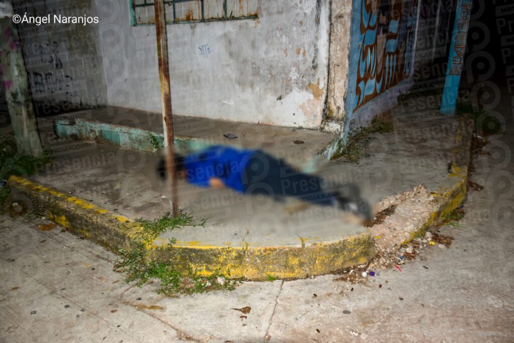 El cuerpo cayó sobre la banqueta, quedó boca abajo en el cruce de las calles de Ignacio Comonfort esquina con la calle Emiliano Zapata del barrio Cuarto de Oluta.