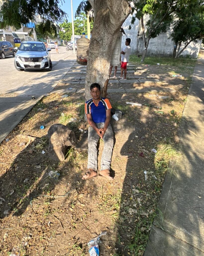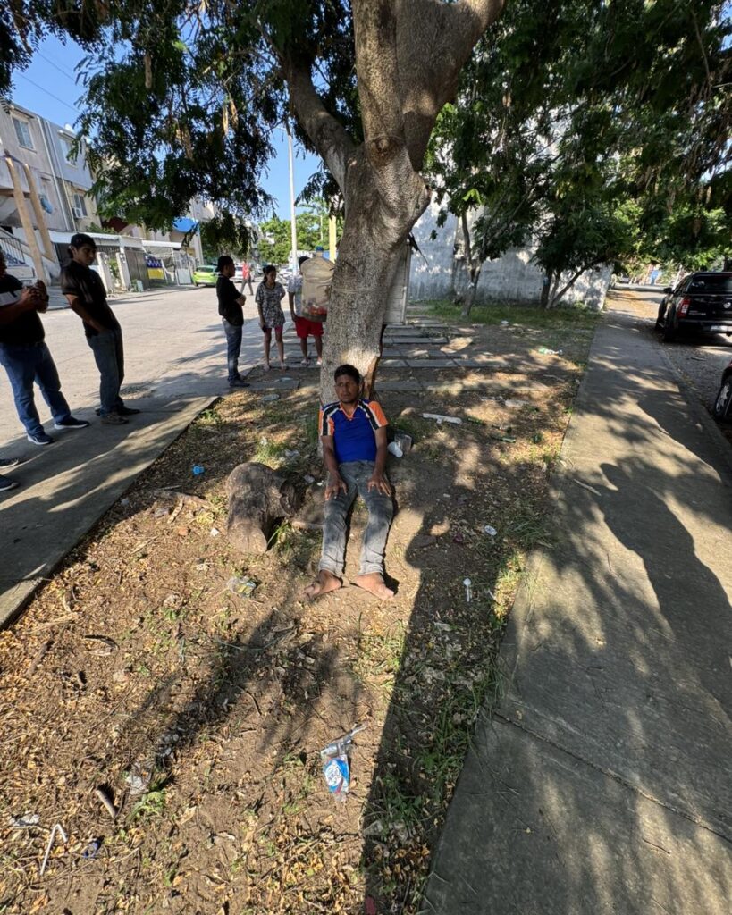 Habitantes del lugar que ya están hartos de sus acciones, lo amarraron con un mecate a un poste y le propinaron una golpiza, mientras otros más solicitaron ayuda al número de emergencias 911.