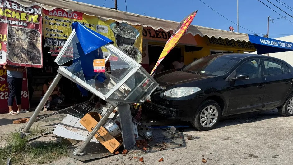 El vehículo, color negro, estaba estacionado a escasos metros del local, sobre la calle 20 de Noviembre. Sin embargo, al momento de arrancarlo, la conductora no logró controlar la unidad y terminó incrustada contra el puesto, tumbando por completo la vitrina de los tradicionales chicharrones.