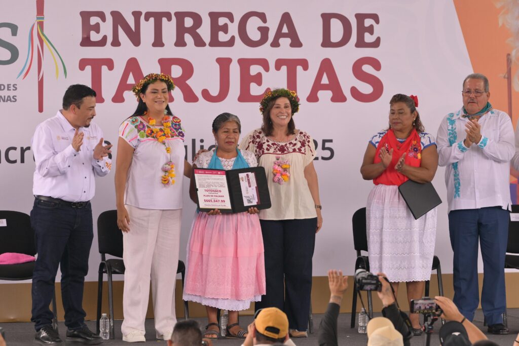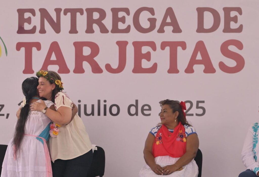 Luego de entregar las tarjetas de Bienestar a Amalia Rivera Santiago de El Tajín y a María Anastasia Vázquez Lorenzo de Plan del Palmar, la Gobernadora reconoció la iniciativa de la presidenta Claudia Sheinbaum Pardo para entregar el presupuesto de manera directa, de ahí que fue la primera en sumarse.