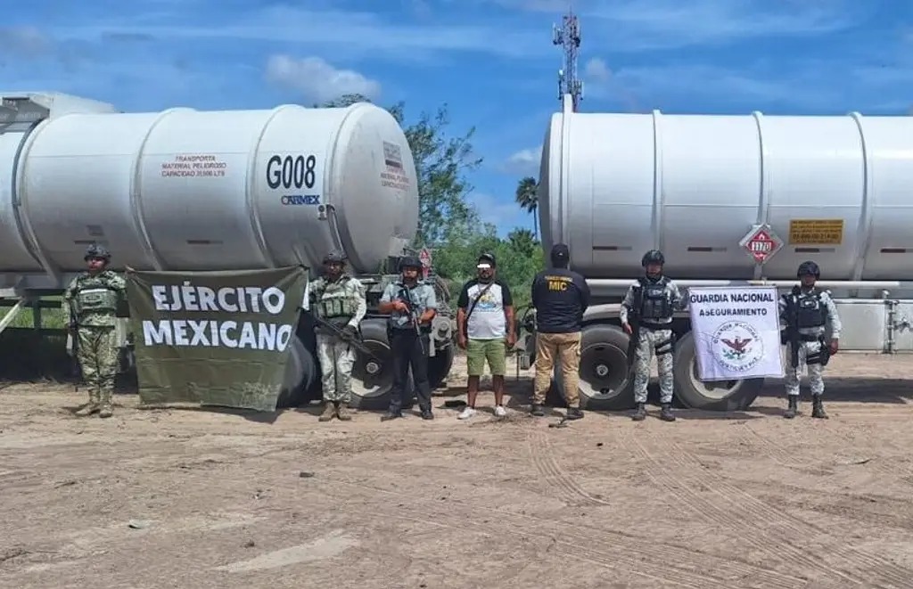 Elementos de la Guardia Nacional Ejército y Pemex aseguraron un tráiler tipo pipa con doble autotanque en la Carretera Victoria-Matamoros, en el estado de Tamaulipas.