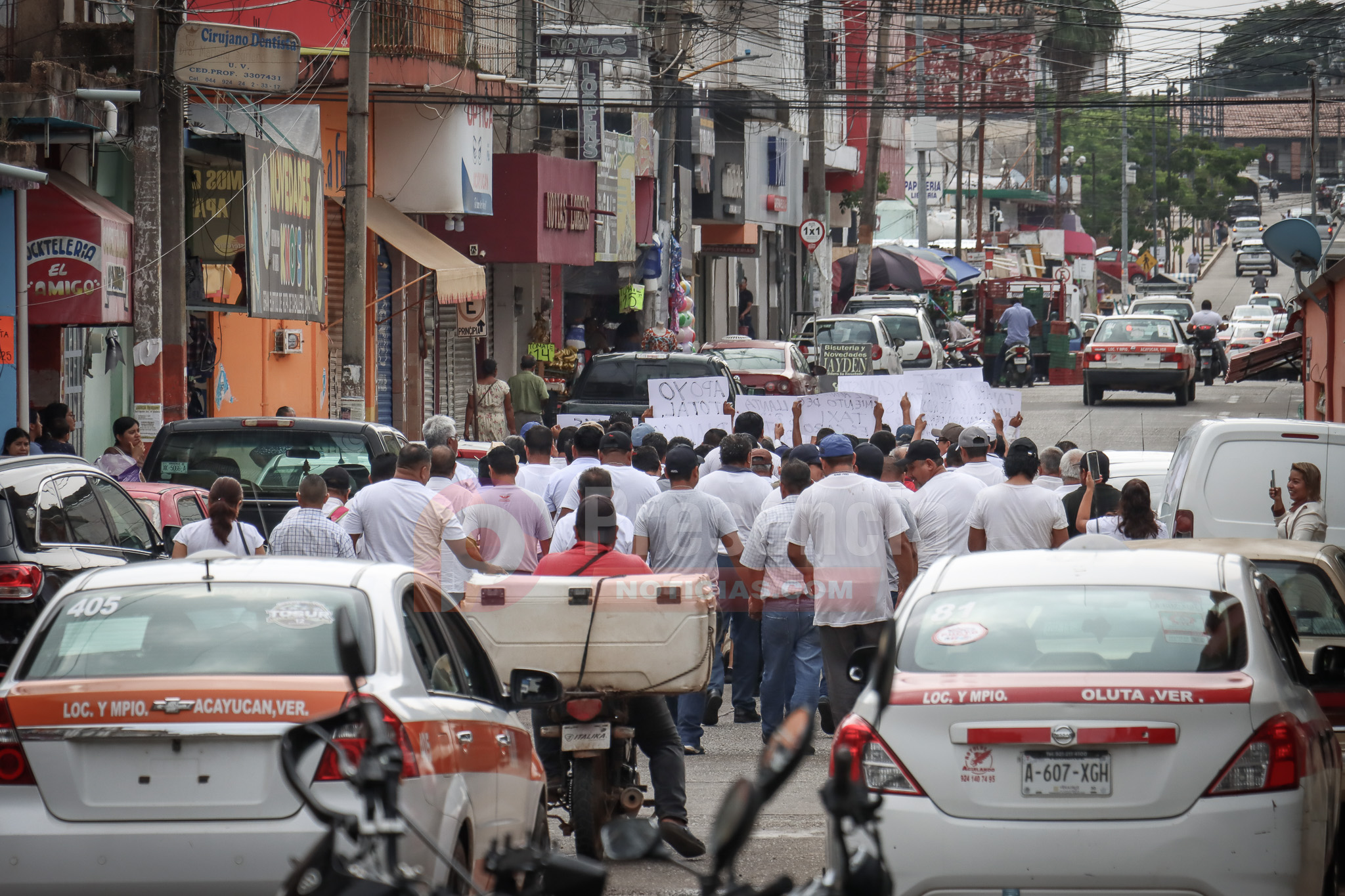 Acayucan, Ver. – Concesionarios, conductores e integrantes de sindicatos en la ciudad de Acayucan, se unieron a la manifestación en toda la entidad para inconformarse por el ajuste de las tarifas del transporte público en la modalidad de taxis en las ciudades de Minatitlán, Coatzacoalcos, Veracruz, Boca del Río, Poza Rica y Papantla.