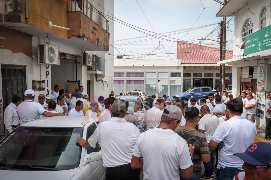 Los participantes se reunieron afuera en las instalaciones en la oficina de la Delegación de Transporte Público, con pancartas, cartulinas, se sumaron a sus colegas de diferentes ciudades de Veracruz, que están siendo afectados y ante el temor que este ajuste llegue a esta zona.