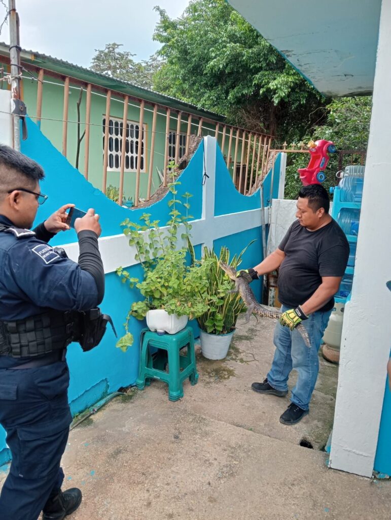 Al lugar se trasladaron los elementos de la corporación al mando de Edmundo Gomez quienes procedieron al aseguramiento del lagarto y será resguardado en la citada dependencia hasta que llegue la autoridad correspondiente para ser liberado en su hábitat natural protegido.
