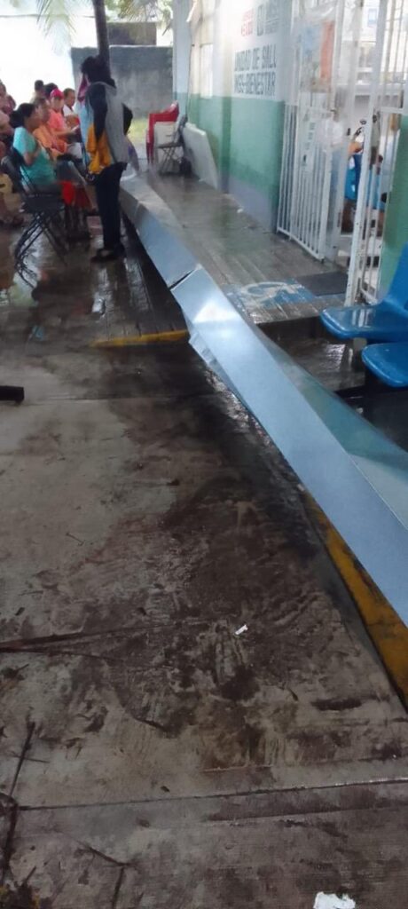 Veracruz, Ver.-A causa de la torrencial lluvia registrada la mañana del miércoles en el puerto de Veracruz, colapsó una estructura metálica al interior de la Unidad de Salud IMSS- Bienestar, en la colonia El Coyol, con saldo de cuatro lesionados.
