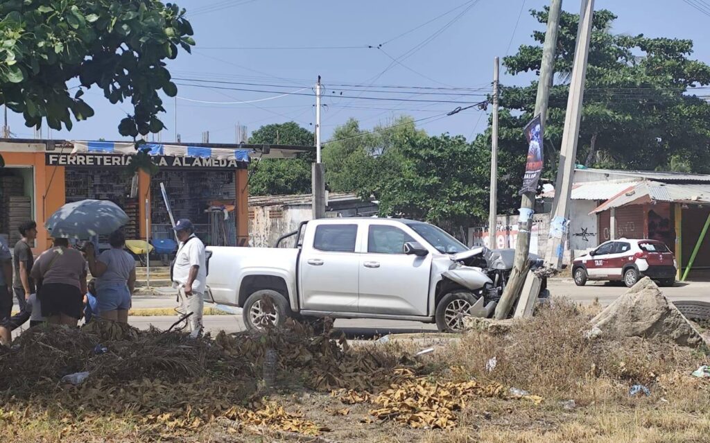 Un aparatoso accidente ocurrió está tarde frente a una ferretería ubicada a la entrada de la colonia Popular Morelos, donde una camioneta terminó impactándose contra un poste de concreto y otro de madera.
