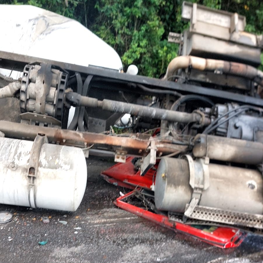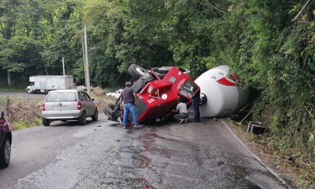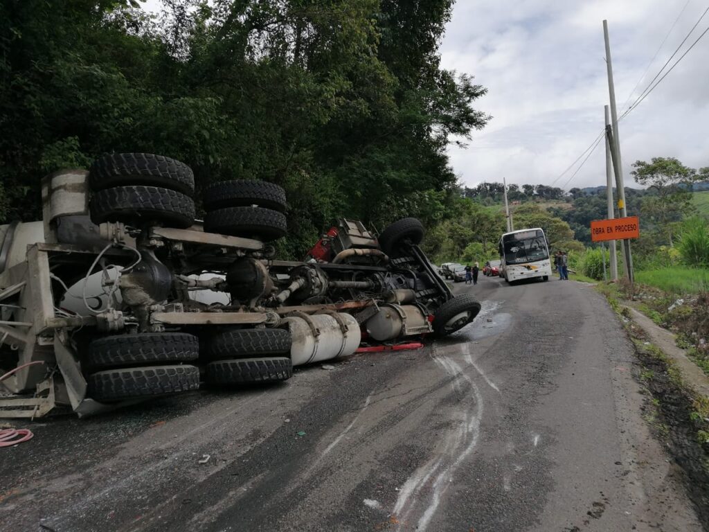 Coscomatepec, Ver. – Un fuerte accidente se registró la tarde de este miércoles en la carretera federal Coscomatepec–Huatusco, a la altura de la barranca del río Jamapa, luego de que un camión revolvedora de concreto perdiera el control y terminara volcado.