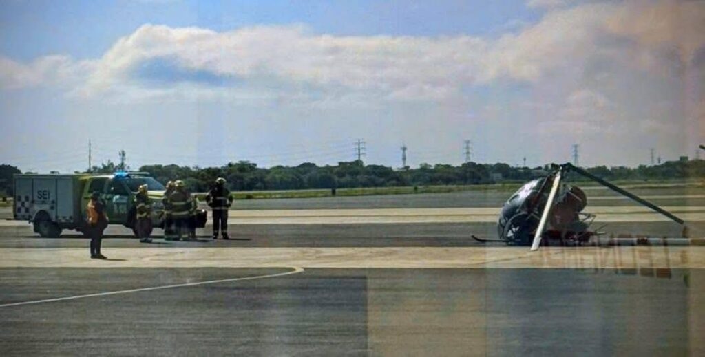 Ciudad del Carmen, Campeche.- Un helicóptero de la escuela Avitron Jet sufrió un accidente este jueves 28 de agosto alrededor de las 09:00 horas en el Aeropuerto Internacional de Ciudad del Carmen. La aeronave tipo Hughes 269 terminó con daños en la estructura y hélices destrozadas, mientras bomberos atendieron la escena. Hasta el momento, se desconoce si hubo lesionados y las causas del incidente.