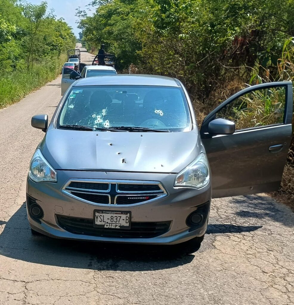 Al pasar por el arco de Sochiapan una camioneta blanca cerrada, con pistoleros arriba, se le atraviesa en la carretera y abren fuego en su contra.
