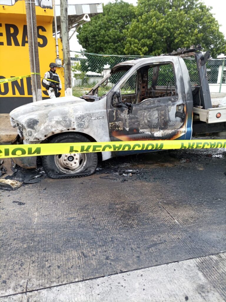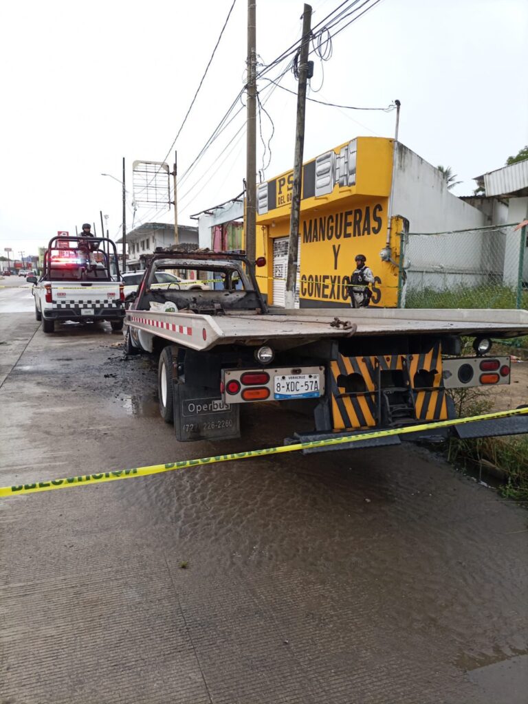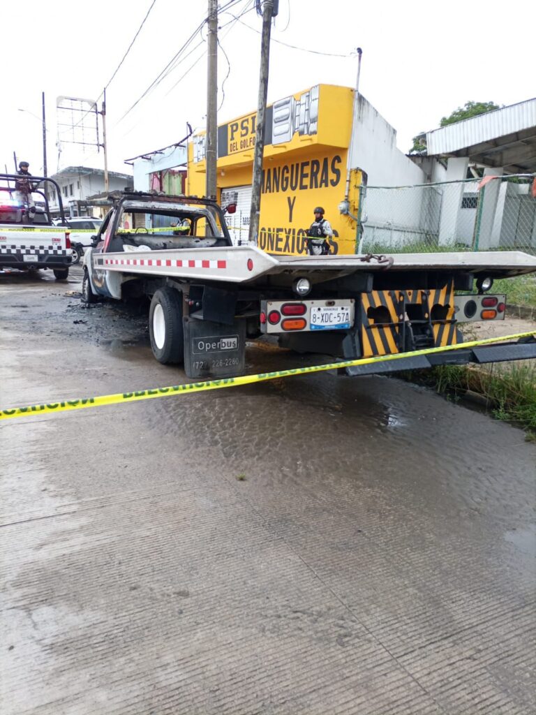 COATZACOALCOS, VER.-Esta madrugada, presuntos delincuentes aventaron bombas incendiarias a una grúa estacionada sobre la carretera Transistmica a unos metros del distribuidor vial en Coatzacoalcos.