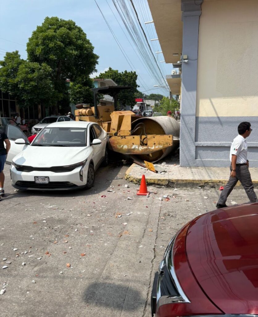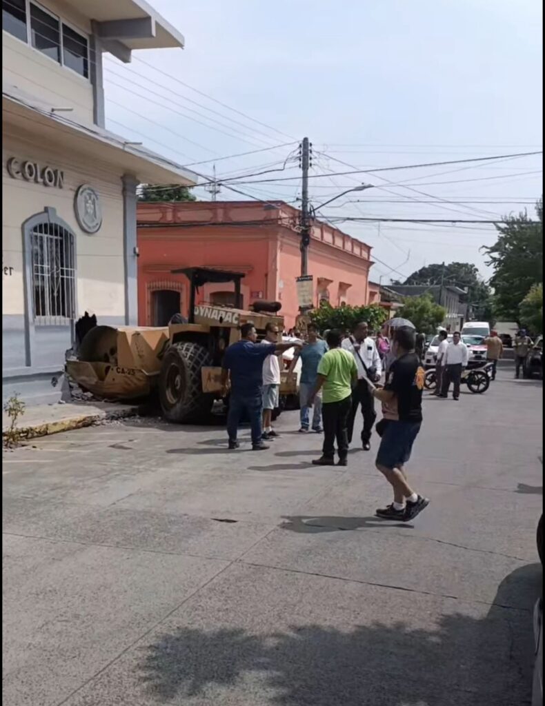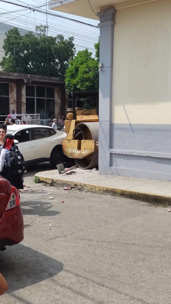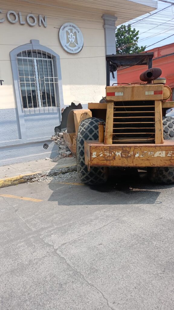 Soledad de Doblado, Ver.- Gran pánico y alerta género entre alumnos y padres de familia de la escuela particular “Cristóbal Colón” el impacto de una máquinaria pesada sobre la fachada de la institución educativa.
