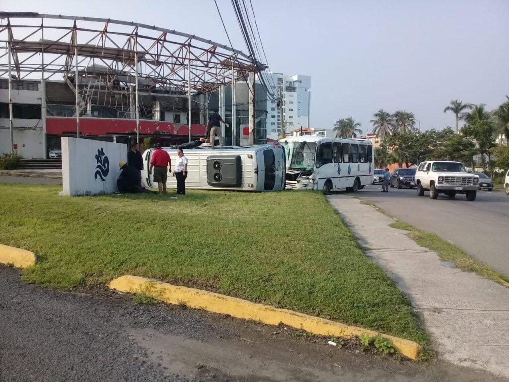 El accidente ocurrió en la avenida Ruiz Cortines, justo a las afueras del Hotel Mocambo, en el carril que va hacia Veracruz, en donde presuntamente un camión de la ruta Boca del Río impactó a una camioneta de turismo tipo Van, provocando que volcara.