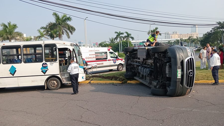 La mañana de este jueves se registró la volcadura de una camioneta tipo Van tras ser impactada por un camión de pasaje en Boca del Río.
