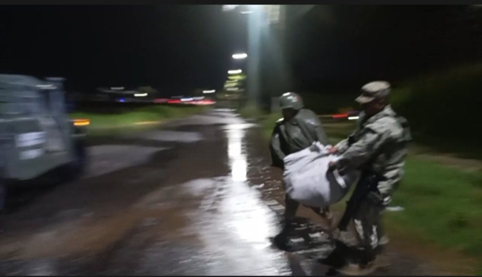Pese a la fuerte lluvias que en las últimas horas a azotado a la ciudad, los responsables no se detuvieron, y salieron de sus guaridas para colocar la lona de color blanco, misma que fue retirada con rapidez por personal del Ejército Mexicano, por lo que se desconoce exactamente su contenido.