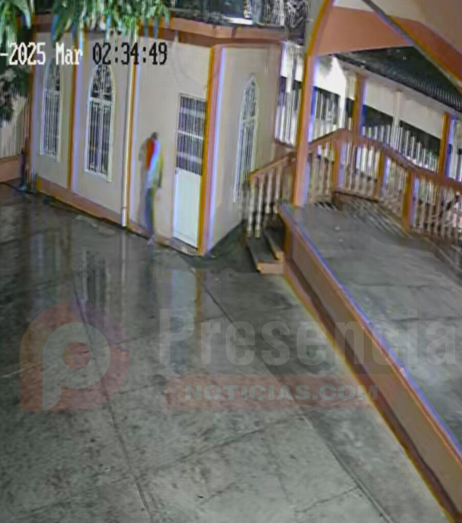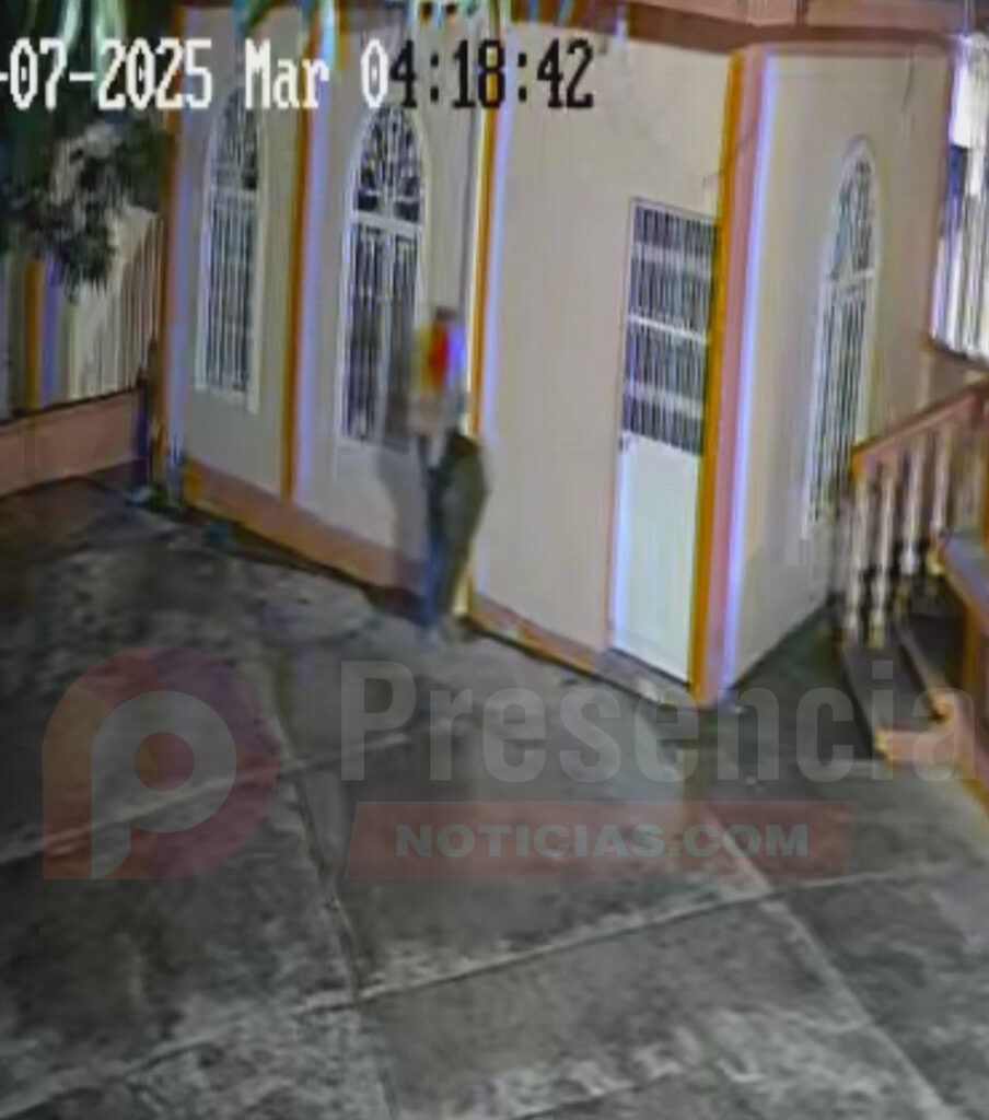 Acayucan, Ver. – Un solitario delincuente, según se observó en las cámaras de videovigilancia fue captado mientras cometió el robo a la iglesia San Pedro y San Pablo de la colonia Revolución de esta ciudad de Acayucan