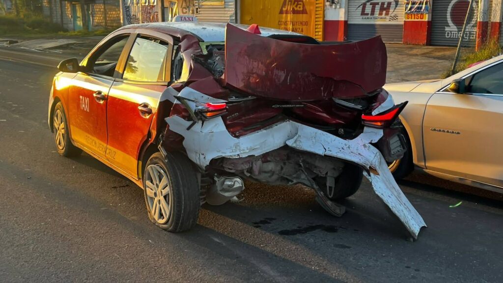 De acuerdo con los primeros reportes, ambos vehículos circulaban con dirección a Veracruz, cuando la camioneta, presuntamente a exceso de velocidad, impactó la parte trasera del taxi, provocando que ambos automóviles quedaran seriamente dañados.