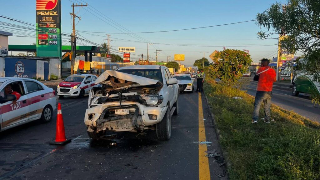 Veracruz, Ver. — Un aparatoso accidente se registró la madrugada de este sábado sobre la autopista Veracruz–Xalapa, a la altura de las Las Amapolas, donde una camioneta blanca chocó por alcance contra un taxi, dejando como saldo un conductor lesionado y cuantiosos daños materiales.