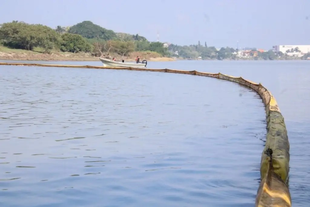 El operativo, se realiza en diez puntos estratégicos del cauce, donde continúan las labores de contención y limpieza con apoyo de trabajadores de Pemex.