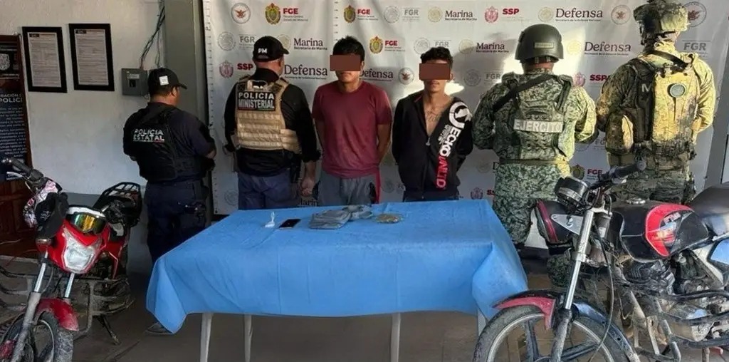 Durante el operativo se detuvo en flagrancia a Brian Yair “N” y Marcos “N”. Asimismo, se aseguraron motocicletas y una sustancia con características similares a las del cristal.