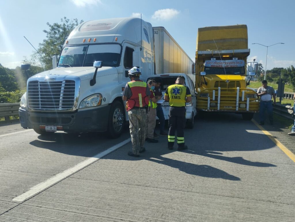 De acuerdo con los primeros reportes, en el incidente se vieron involucrados dos vehículos de carga y una camioneta tipo van.