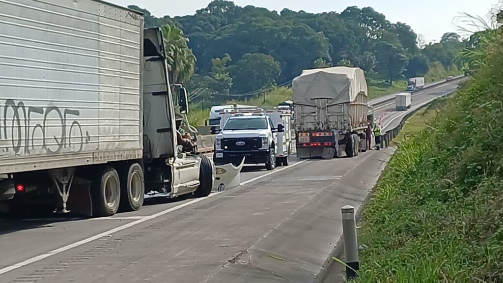 De acuerdo con los primeros reportes, el percance se originó cuando un tráiler con caja seca perdió el control e impactó contra el muro de contención.