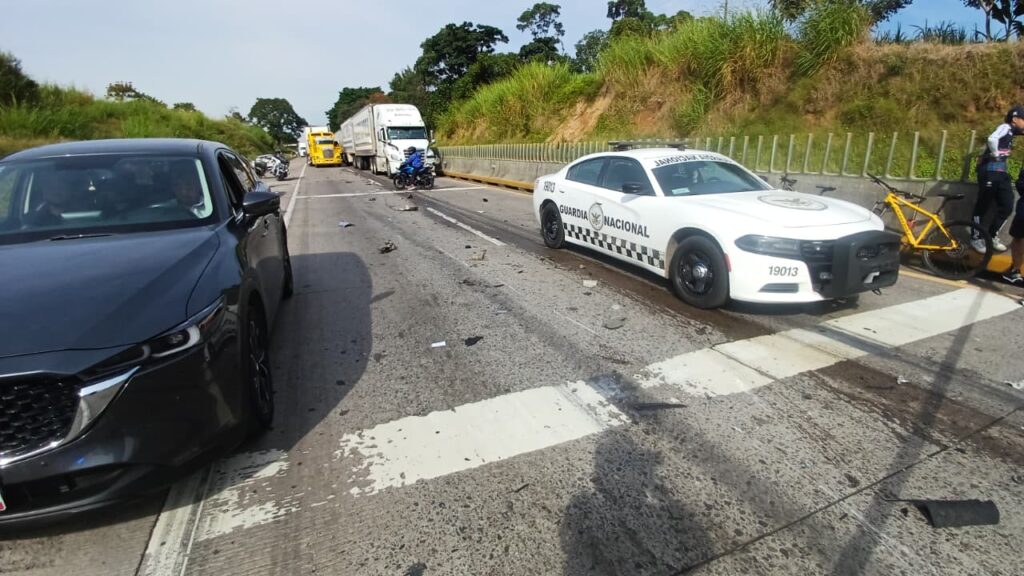Elementos de la Guardia Nacional, división Caminos, se presentaron en el sitio para tomar conocimiento de los hechos, coordinar las labores de abanderamiento y restablecer el flujo vehicular en el carril de bajada con dirección al trébol de Amatlán.