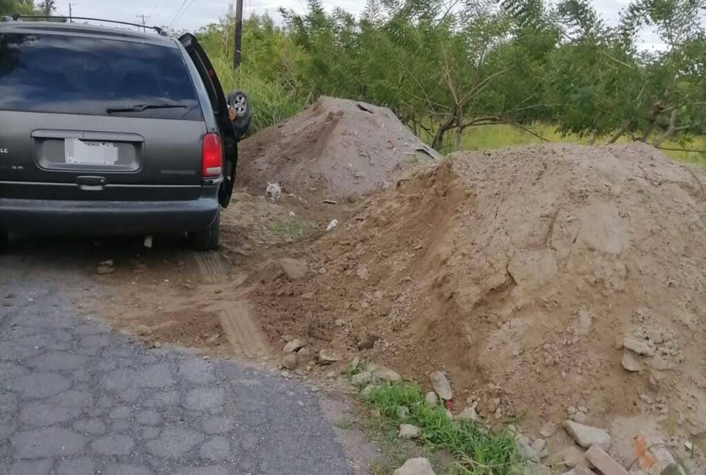 De acuerdo con testigos, al circular cerca del Banco del Bienestar, la conductora se encontró con varios montículos de tierra abandonados sobre la vía, los cuales habrían funcionado como una rampa, provocando que perdiera el control del vehículo y volcara, quedando con las llantas hacia arriba.