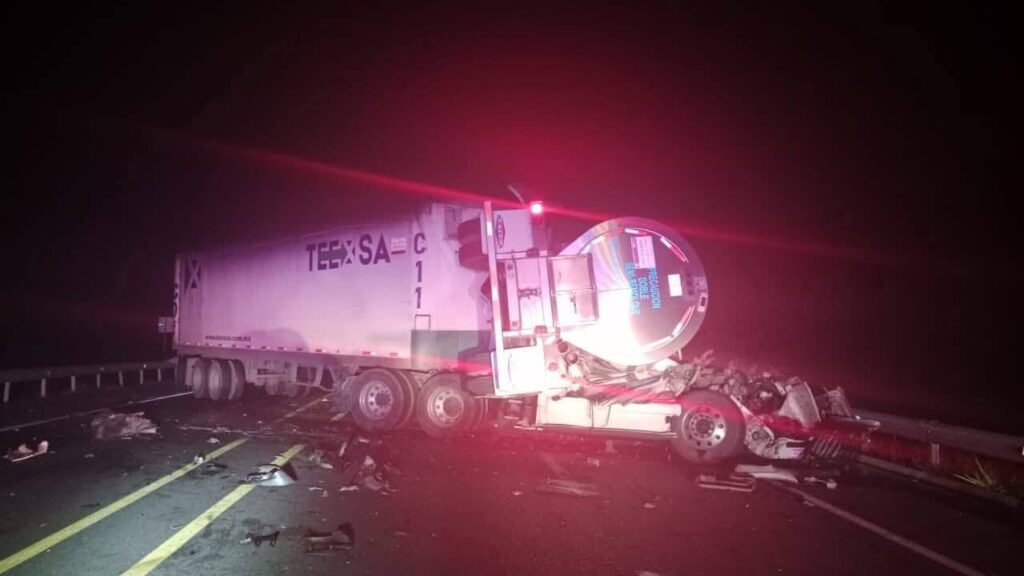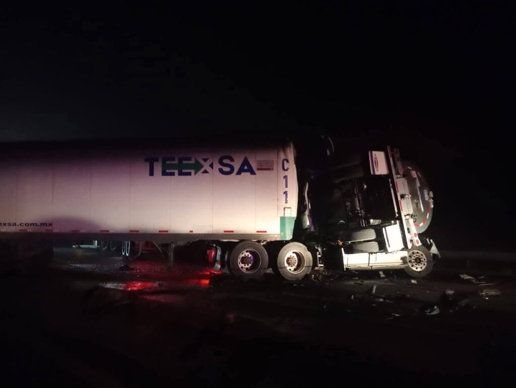El choque fue entre una pipa cargada de aceite de la empresa Azteca, y un tráiler doble remolque marcado con la razón social TEExSA.
