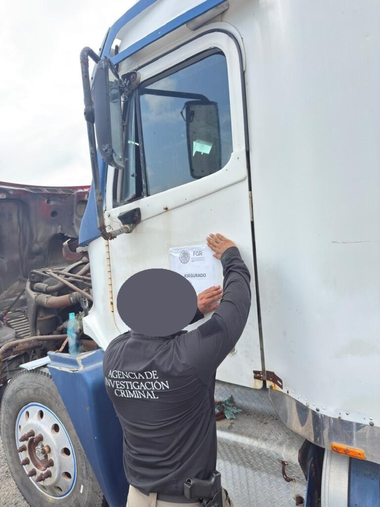 Además, los agentes aseguraron 24 vehículos de distintos tipos: tres tractocamiones, dos unidades tipo dolly, siete cajas secas, cuatro semirremolques adaptados como casas rodantes, una motocicleta y otras siete cajas secas que se encontraban completamente calcinadas.