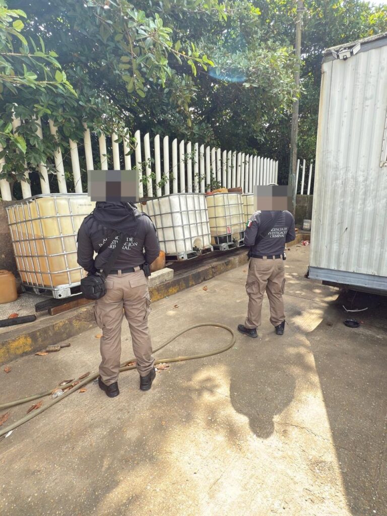 Elementos de la Policía Federal Ministerial (PFM), respaldados por especialistas del Centro Federal Pericial Forense (CFPF) de la Agencia de Investigación Criminal (AIC), llevaron a cabo el operativo. En el lugar se localizaron dos mil 430 litros de combustible, así como diversos contenedores: siete cubitanques, dos depósitos metálicos, 27 bidones vacíos, tres cubetas y cuatro mangueras empleadas presuntamente para el manejo del hidrocarburo.