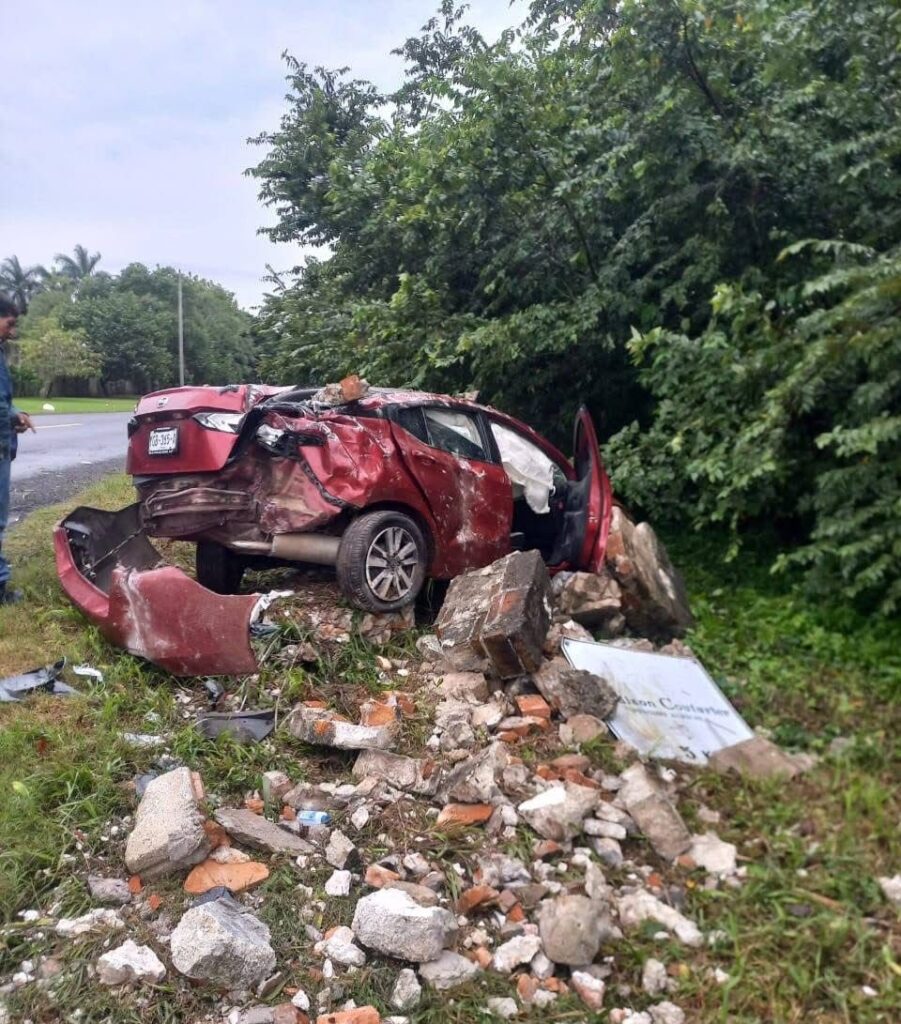El accidente ocurrió cuando el conductor —quien sería vecino Martínez de la Torre, perdió el control de la unidad con matrícula YGB-365-A. El vehículo salió de la cinta asfáltica, volcó y terminó impactándose contra un anuncio hecho de ladrillo y concreto, el cual derribó por completo.