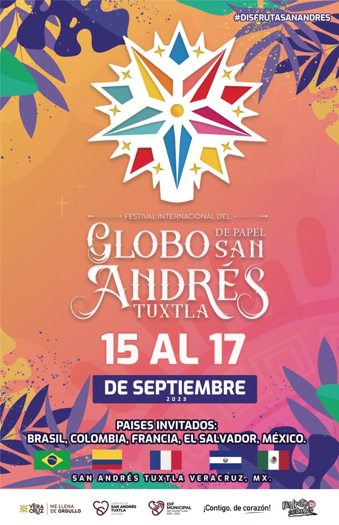 Del 15 al 17 de Septiembre San Andrés Tuxtla te espera para disfrutar del Festival Internacional del Globo de Papel con la participación de artesanos globeros locales y de países invitados como Brasil, Colombia, Francia, El Salvador y de los estados de Yucatán, Estado de México y Oaxaca.