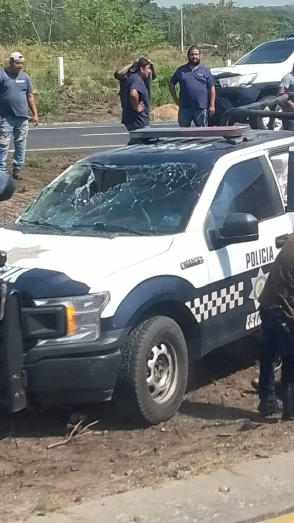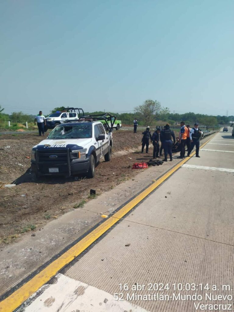 #Cosoleacaque, Ver.- Elementos de la Secretaría de Seguridad Pública (SSP), sufrieron un aparatoso accidente cuando transitaban sobre la autopista Cosoleacaque – Nuevo Teapa, a la altura del lugar conocido como la Diez en el municipio de Cosoleacaque.