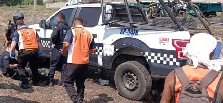 Paramédicos de protección Civil de Cosoleacaque y de Caminos y Puentes Federales (CAPUFE) atendieron a los policías lesionados.